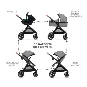 Vneste styl do svých každodenních procházek! ESME je multifunkční dětský kočárek 3 v 1, který vás okouzlí svou funkčností a elegancí. Zaujmete pozornost krásným, moderním designem – decentní barevné provedení a pečlivě zpracovaný rám zajistí, že si každodenní procházky s dítětem zamilujete ještě víc. Kočárek oceníte také díky velké vaničce s ventilačním panelem, kterou ve třech jednoduchých krocích přeměníte na sportovní sedadlo. Toto řešení 2 v 1 vám ušetří místo při skladování jednotlivých částí. Za zmínku stojí i další praktická řešení, jako je skládání do kompaktních rozměrů spolu se sedadlem nebo cestovní systém – TRAVEL SYSTEM (autosedačka MINK PRO 2 i-Size a adaptéry jsou součástí balení). Kočárek 3 v 1 ESME má i velká odpružená kola z nepropíchnutelné TPE gumy – jsou lehká, otočná a vhodná do každého terénu. ESME vás spolehlivě provází na každodenních procházkách i na delších dovolených. V balení naleznete kompletní sadu potřebného příslušenství – bez dalších nákladů! Užívejte si pohodlné procházky díky prostorné tašce, pláštěnce, nánožníku a držáku na sklenici. Multifunkční kočárek 3 v 1 až do 25 kg ESME je praktický kočárek 3 v 1 s celkovou nosností až 25 kg. Má pevný rám a funkční sedátko 2 v 1, které snadno přeměníte z vaničky ve sportovní verzi. Součástí balení je také kompletní příslušenství, adaptéry a dětská autosedačka. Jednoduché ovládání ESME se velmi snadno ovládá, a proto si poradí i v přeplněných prostorách. Konstrukce v kombinaci s otočnými koly usnadňuje manévrování. Přední kola můžete na náročnějším povrchu zablokovat pro jízdu přímo. Kočárek se navíc jednoduše složí do kompaktních rozměrů – a to i se sedadlem! Ať už jedete na hory nebo k moři, ESME je připraven na každou výzvu. Kompletní příslušenství Součástí balení je autosedačka MINK PRO 2 i-Size (40–87 cm) s adaptéry, které umožňují vytvořit cestovní systém (TRAVEL SYSTEM). Kromě toho získáte držák na sklenici, univerzální nánožník, pláštěnku a tašku na rukojeť. Velká vanička s ventilačním panelem ESME byl navržen pro pohodlí každého dítěte. Pro nejmenší je připravena prostorná vanička s ventilačním panelem a velkou stříškou s okénkem na kontakt s dítětem. Vanička je měkká a pohodlná – ideální pro spánek na čerstvém vzduchu. Jednoduchá přeměna z vaničky na sportovní sedadlo Praktické sedátko 2 v 1 umožňuje rychlou a jednoduchou přeměnu vaničky na sportovní verzi. Stačí tři kroky a kočárek pro novorozence se přemění na kočárek pro starší dítě. Nemusíte hledat zvláštní místo pro skladování další části, kdy dítě z vaničky vyroste. TRAVEL SYSTEM ESME je navržen tak, aby vám usnadnil společné procházky i cestování. V balení proto naleznete adaptéry a autosedačku MINK PRO 2 i-Size – díky nim vytvoříte TRAVEL SYSTEM, který oceníte na cestách. Dítě usnulo v autě? Žádný problém: vyjměte autosedačku, nacvakněte ji na rám kočárku – a můžete pokračovat! Autosedačka MINK PRO 2 i-Size je model RWF (proti směru jízdy) pro nejmenší děti. O bezpečnost pasažéra se starají pokročilé systémy jako H-GUARD+ a SPS+. Poloha RWF je navíc až 5× bezpečnější než poloha po směru jízdy. Široké možnosti nastavení sportovní verze ESME je pohodlný i pro starší děti: sportovní sedátko je dlouhé a široké, takže poslouží i předškolákům do cca 4 let. Sedátko snadno nastavíte podle potřeb dítěte – k dispozici je poloha vsedě i pololežmo, ideální pro krátký odpočinek. Nastavitelná je také rukojeť pro rodiče, takže si kočárek pohodlně přizpůsobíte. Velká kola do každého terénu ESME má velká nepropichovatelná kola s plným odpružením – jsou vyrobena z lehké a odolné TPE gumy. Není třeba je nafukovat, což je velkou výhodou na delších cestách. Hodí se do každého terénu – od chodníků až po lesní cesty. Praktická řešení Kočárek 3 v 1 ESME má velkou stříšku s okénkem pro kontakt s dítětem, která chrání před větrem i sluncem. Pod sedadlem se nachází prostorný košík s nosností až 3 kg – ideální pro nákupy nebo nezbytné doplňky. O bezpečnost dítěte se starají nastavitelné 5-bodové pásy s měkkými polstry a odnímatelné madlo, které lze otevřít z obou stran. Elegantní design ESME si můžete přizpůsobit dle vlastního stylu: je dostupný ve 3 moderních barvách. Měkký materiál a elegantní povrchové zpracování mu dodávají stylový vzhled na každé procházce. Materiály - Rám: ocel - Kola: TPE guma - Madlo a rukojeť: eko kůže - Potah: polyester Rozměry - Rozložený kočárek: 100 × 60 × 102,5 cm - Složený kočárek: 72 × 60 × 40 cm - Rozměry sedáku: 19 × 35 cm - Rozměry opěradla: 41 × 35 cm - Rozměry opěrky nohou: 19 × 35 cm - Celková délka sedáku vleže: 79 cm - Výška sedáku od země: 55 cm - Průměr předních kol: 18 cm (8”) - Průměr zadních kol: 25 cm (11”) - Výška po rukojeť: 102,5 cm - Rozměry vaničky (vnější): 35 × 21 × 81 cm - Rozměry vaničky (vnitřní): 34 × 20 × 79 cm - Hmotnost rámu: 8 kg - Hmotnost sedáku: 2,45 kg Rozměry balení: 48 × 70,5 × 51 cm Důležité: Kočárek před použitím vždy kompletně zajistěte podle návodu. Nepřekračujte maximální nosnost. Kočárek používejte na rovném, bezpečném povrchu. Vanička je určena ke krátkodobému přenášení dítěte – nikdy ji nenoste se samotným dítětem bez neustálého dohledu. Adresa dodavatele: Supl4kraft sp. z o.o. ul. Tatrzanska 1/5, 60-413 Poznan, Poland support@kinderkraft.com www.kinderkraft.com