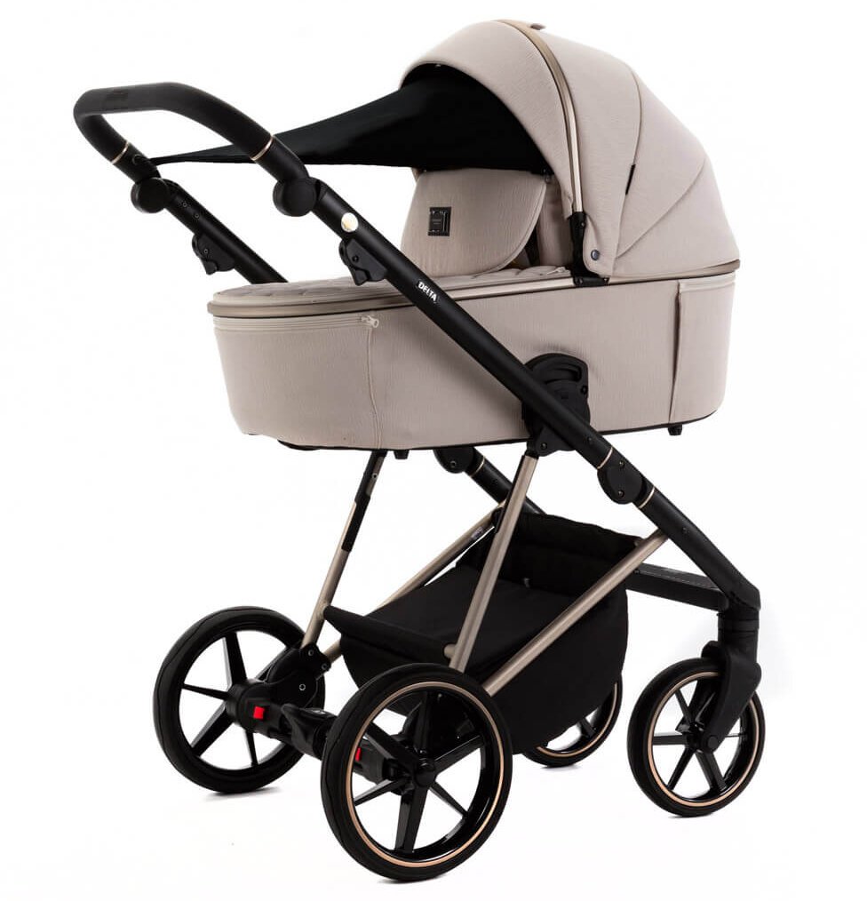 Model kočárku Delta ve variantě Natura je kombinací praktičnosti, funkčnosti a konzistentnosti. Kolekce se vyznačuje pečlivým výběrem barvy podvozku a doplňků, které ladí s barvou látky použité v kočárku - to je to, co je odlišuje od ostatních modelů a kolekcí kočárků. Tyto klidné, jemné a elegantní barevné kombinace odkazují na barvy země a přírody kolem nás. - Delta má praktický systém skládání korbičky, který usnadňuje cestování nebo uskladnění kočárku. - Přenosná korba má dva větrací otvory na zip (vpředu a vzadu), takže se s děťátkem pohodlně cestuje za každého počasí. Ve stříšce korbičky se nachází dodatečný větrací otvor, který z něj činí praktické prodloužení stříšky. - Pro ještě větší pohodlí slouží sluneční clona, která je ideální pro slunečné dny a chrání jemnou pokožku vašeho dítěte před slunečními paprsky. - Pohodlná drážkovaná pěnová matrace umístěná v korbičce díky své elasticitě a flexibilní struktuře zaručuje pohodlí při spánku a vysoce kvalitní odpočinek, kterým je dětský spánek. - Set obsahuje také sportovní sedadlo kočárku, které můžete namontovat na podvozek v obou směrech a co je nejdůležitější, můžete jej složit spolu s podvozkem bez ohledu na směr otočení. - Verze s korbou i sportovní verze mají adaptéry s takzvaným paměťovým systémem – což jsou paměťová tlačítka, která umožňují snadné odstranění korby z rámu jednou rukou. Stačí je stisknout a paměťový systém udrží tlačítka stisknutá, dokud jej neodstraníte. Technické specifikace: - rozměry kočárku s korbou: 99 x 103-117 cm (D x V) - rozměry korby: 84 x 40 x 62 cm (D x Š x V) - rozměry kočárku se sportovní částí: 99 x 110 cm (D x V) - rozměry složeného kočárku: 80 x 58 x 40 cm (D x Š x V) - hmotnost s hlubokou korbou: 12,9 kg - hmotnost korby: 4,7 kg - hmotnost se sportovním sedadlem: 12,5 kg - hmotnost sportovní části: 12,1 kg - nosnost kočárku: 15 kg Důležité! Pokyny si pozorně přečtěte a uschovejte pro pozdější použití. Upozornění: - nikdy nenechávejte dítě bez dozoru - používejte postroj, pokud se dítě dokáže bez pomoci posadit - před použitím si ověřte, že jsou všechny zajišťovací prvky zakleslé - při skládání a rozkládání tohoto výrobku zajistěte, aby dítě nebylo v kočárku a ani blízko něho aby nemohlo dojít k poranění dítěte - tento výrobek není hračka, nedovolte dítěti, aby si s tímto výrobkem hrálo - nepoužívejte tuto sedačku pro děti mladší 6 měsíců - vždy používejte brzdící systém - před použitím zkontrolujte, zda jsou zajišťovací prvky lůžka nebo sedačky nebo autosedačky správně zakleslé - tento výrobek není vhodný pro běhání nebo jízdu na bruslích Důležité informace: Univerzální dětský kočárek je určen pro děti ve věku 0-36 měsíců s tělesnou hmotností 15 kg. Korba je určena pro děti o hmotnosti maximálně 9 kg. Pokud kočárek nepoužíváte, vždy používejte parkovací brzdu. Nepoužívejte jinou než výrobcem dodanou matraci. Při ukládání a vyjímání dítěte se ujistěte, že je parkovací brzda zajištěna. Maximální zatížení košíku pod kočárkem je 2 kg. Na řidítka kočárku zavěšujte jen tašku na příslušenství, která byla dodána spolu s kočárkem. Její maximální hmotnost je 2 kg, jakákoli zátěž zavěšená na řídítkách má vliv na jeho stabilitu. Kočárek je určen k přepravě jednoho dítěte. Tento podvozek lze používat pouze se sedačkou, vaničkou a autosedačkou, které byly dodány výrobcem v jedné sadě. Používejte výhradně náhradní díly dodávané nebo doporučené výrobcem. Jakékoli doplňkové vybavení, které nebylo uvedeno výrobcem, nesmí být použito. Kočárek nenahrazuje kolébku ani dětskou postýlku. Když potřebuje dítě spát, doporučujeme jej uložit do vhodné vaničky, kolébky nebo postýlky – týká se dětské autosedačky používané spolu s podvozkem kočárku. Pás v rozkroku používejte vždy současně s bederními pásy. Nikdy nenechávejte kočárek s dítětem na svahu, a to ani v případě, že je brzda zajištěna. Malé díly, jako jsou pojistky na vosy, zajistěte během montáže kočárku tak, aby se k nim nedostaly děti. Nikdy neodstavujte kočárek s dítětem v blízkosti bazénů, schodišť a ohně. Plastové části obalu uchovávejte mimo dosah dětí, aby nemohlo dojít k riziku jeho udušení. V případě převážení dítěte se zvednutou hlavovou opěrkou vaničky je bezpodmínečně nutné používat doplňkové bezpečnostní pásy. Zvedání hlavové opěrky nepoužívejte u novorozence. Bezpečnostní popruhy používejte od momentu, kdy vaše dítě začne samostatně sedět. Kočárek slouží k zevnímu použití. Pokud je skladován ve vnitřních obytných prostorách, pak vždy používejte ochranné potahy na kola. Při nájezdu na obrubník nebo jiné vyvýšené místo nadzvedněte přední kola. Silný náraz do překážky může způsobit deformaci konstrukce. S kočárkem nejezděte po schodech. Přenášení dítěte v kočárku po schodech je nebezpečné. Nepřenášejte kočárek jeho zvedáním za řídítka, madlo či stříšku. Kočárek se přenáší uchopením za boky. Zákaz přenášení dítěte ve vaničce přidržující za rukojeť striešky. Pokud došlo k poškození jakékoli části kočárku, nepoužívejte jej. Před montáží se ujistěte, zda je výrobek a všechny jeho součásti v pořádku, jsou-li poškozeny, výrobek by neměl být používán. Při skládání a rozkládání kočárku se ujistěte, zda se dítě nachází v bezpečné vzdálenosti. Při nastavování dávejte pozor na to, aby jednotlivé části kočárku nebyly v kontaktu s částmi těla dítěte. Kočárek skladujte v místě mimo 