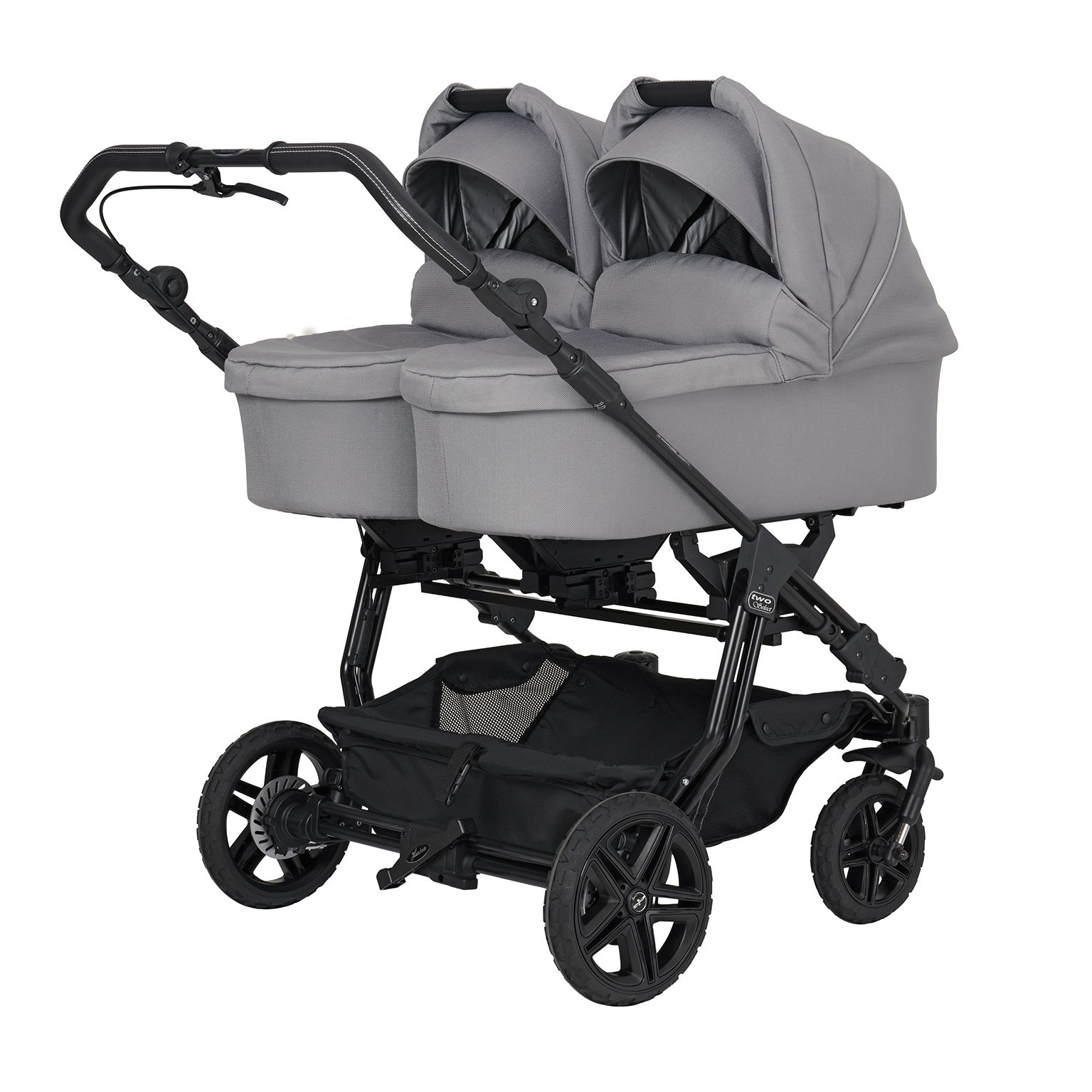 Two Select je ideální kočárek pro dvojčata nebo sourozence, navržený tak, aby poskytoval maximální komfort a flexibilitu v každodenním provozu. Díky kolům City Felge Grip a  ruční brzdě s vysoce výkonnými brzdovými kotouči nabízí bezpečné manévrování a jistotu i v náročnějším terénu. Výškově nastavitelná rukojeť se přizpůsobí každé postavě a podvozek pohodlně projede všemi standardními dveřmi (80 cm).