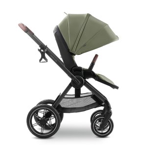 Komfort pro náročné rodiče // Kočárek s nánožníkem nebo výškově nastavitelným otočným sedátkem splňuje nejvyšší nároky. Vynikající odpružení a brzdný systém s barevnou indikací pro větší pohodlí. Hliníkový rám, výškově nastavitelná teleskopická rukojeť, přepravní zámek a paměťová tlačítka vám usnadní manipulaci. Po složení je kočárek samostatně stojící.