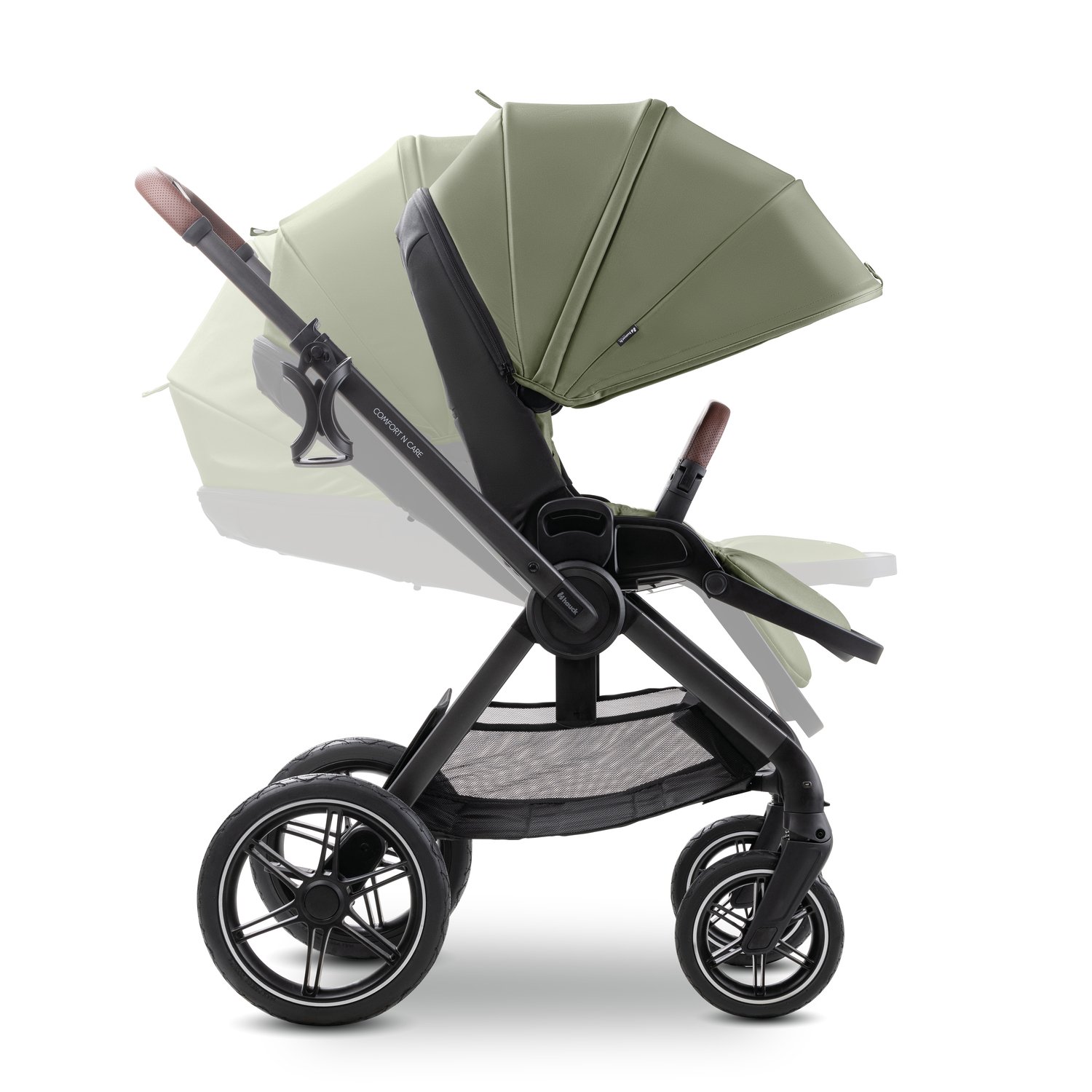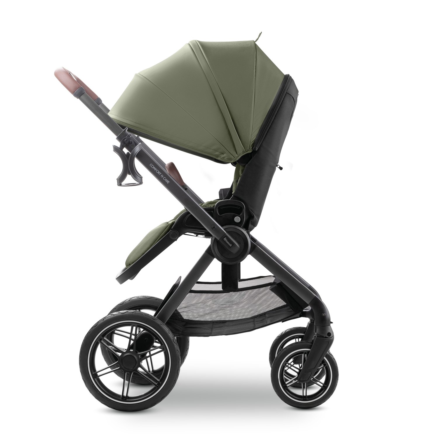 Bezpečné a pohodlné cestování // Gumová kola do každého terénu jsou připravena na každý výlet. Odpružení 4x4 jemně pohupuje vaše děťátko, XL sluneční stříška s prodloužením (s UV 50+) nabízí ochranu před každým počasím a XL panoramatická síťovaná okénka zajišťují čerstvý vzduch. Sedátko kočárku má výškově nastavitelné 5bodové bezpečnostní pásy, dobře polstrovanou, extra vysokou opěrku zad a nánožník.