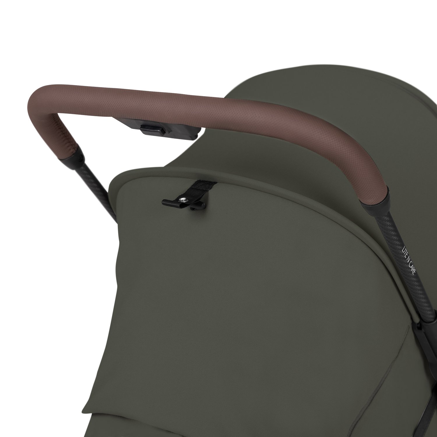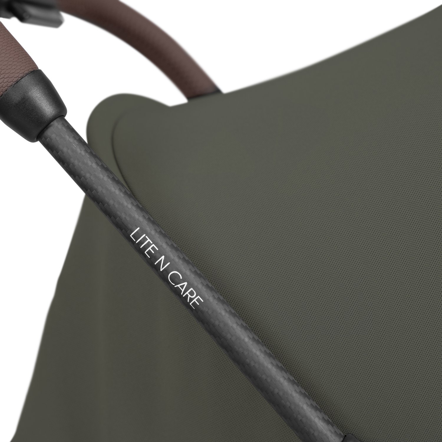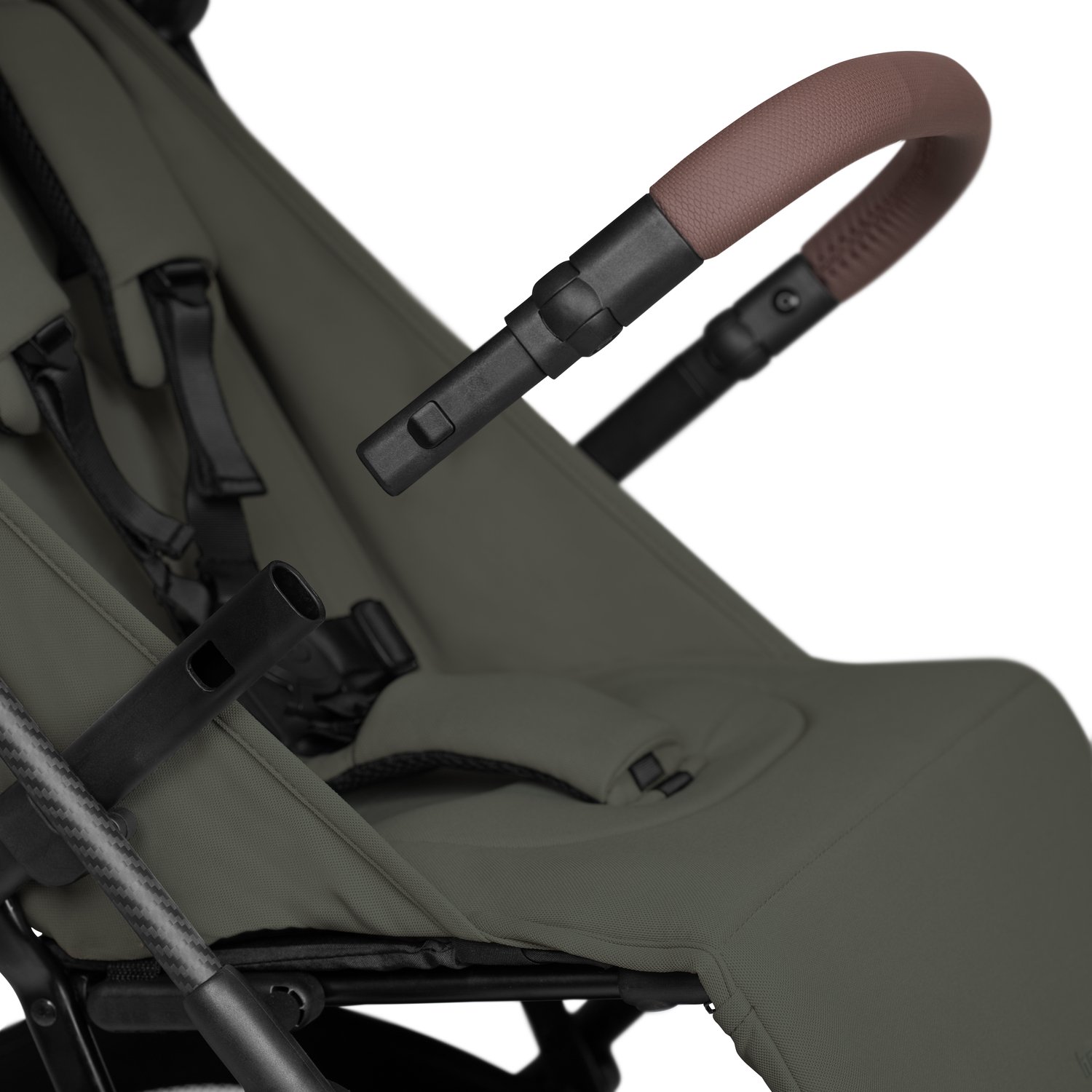 Ať už se pohybujete v úzkých uličkách, šplháte po schodech nebo stíháte letadlo: jedinečný karbonový rám je mimořádně lehký, aniž by to mělo vliv na stabilitu nebo pohodlí. Kožený vzhled madla a ochranného oblouku dodávají kočárku moderní a stylový vzhled.