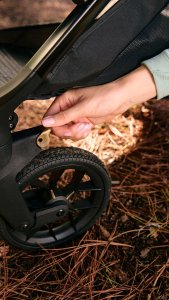 Podvozek APTICA XT Je neuvěřitelně praktický! Rozkládá se a skládá v okamžiku jednou rukou, stojí samostatně, když je složený, a rukojeť se přitom nedotýká země, takže ruce nepřicházejí do kontaktu s nečistotami. Teleskopická rukojeť podvozku, nastavitelná do 4 poloh, se přizpůsobí každé výšce postavy.