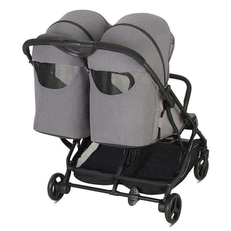 Pohodlný pro každou fázi růstu dětí  Velká a polstrovaná sedadla jsou pohodlná pro novorozené děti i starší sourozence. Přizpůsobuje se růstu díky možnosti nastavení výšky pásů, ramenních popruhů a čalouněne chrániče nohou zabraňují kontaktu pásů s jemnou pokožkou dítěte.