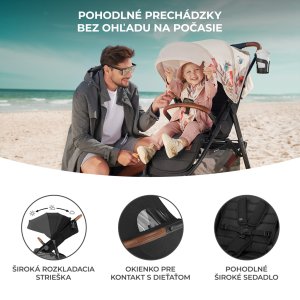 Sportovní kočárek GRANDE PLUS je řešením pro každého rodiče, který žije v městské zástavbě. Tento kočárek od narození do 22 kg poslouží vašemu dítěti několik let a díky chytrým řešením usnadní rodičům jízdu s kočárkem v městských podmínkách. Díky systému CLICK & FOLD kočárek snadno složíte jednou rukou. Díky odpružení všech kol je procházka příjemná i po dlažebních kostkách nebo nerovném chodníku, zatímco plynule nastavitelná opěrka zad z polohy vsedě do polohy vleže umožňuje rychle vytvořit dokonalý prostor pro venkovní spánek na čerstvém vzduchu. Po celou dobu používání kočárku GRANDE PLUS má prostornou sedačku a nastavitelnou opěrku zad a nohou. Díky tomu bude dítěti sloužit od narození do 22 kg, tedy přibližně do 4 let! Skládání jednou rukou GRANDE PLUS složíte jednou rukou. Systém CLICK & FOLD v rukojeti umožňuje rychlé a efektivní uložení kočárku do zavazadlového prostoru. Ve složeném stavu má kočárek kompaktní rozměry. Odpružená kola Kočárek má odpružení 4 kol. Díky tomu si GRANDE PLUS poradí i s městským terénem – nerovnými chodníky nebo dlažebními kostkami. Kola není třeba nafukovat a jsou také neprorazitelná. Přední kola jsou otočná o 360 stupňů a mají aretaci pro jízdu rovně. Pohodlné cestování Sedačka je široká a prostorná. Cestování v ní je pohodlné a v případě potřeby lze nastavit opěrku nohou tak, aby byla procházka pro Vaše dítě ještě pohodlnější. Široký rozsah nastavení Plynulá regulace opěradla z polohy vsedě do polohy vleže – dítě se může během nastavení nacházet v kočárku. Spolu s nastavitelnou opěrkou nohou vytváří pohodlný prostor pro spánek na čerstvém vzduchu. Zvětšená stříška Velkou stříšku lze ještě zvětšit a GRANDE PLUS pak ochrání Vaše dítě před chladným větrem. Na zadní straně stříšky se nachází okénko pro kontakt s dítětem, můžete tedy mít své děťátko neustále na očích. Doplňková řešení: - 5bodové bezpečnostní pásy s chrániči a možností uzpůsobení pro novorozence - velký koš s nosností až 2 kg - bezpečnostní zábrana a rukojeť rodiče potažené eko kůží - kapsa na drobnosti ve stříšce Technické parametry: Materiály: - rám: ocel - látka: 100% polyester, pevný, odolný proti otěru a vlivu atmosférických podmínek - povrch madla a rukojeti: eko kůže - kolečka: EVA pěna Rozměry: - složený kočárek: 83 x 62 x 27 cm - rozložený kočárek: 95 x 57 x 106 cm - délka sedačky v poloze pro ležení: 94 cm - rozměry opěrky nohou: 36 x 23 cm - rozměry sedačky: 35 x 22 cm - rozměry opěradla: 35 x 47 cm - přední kola: 16 cm - zadní kola: 25 cm - hmotnost: 9,8 kg - pro děti o hmotnosti: od 0 měsíců do 22 kg - maximální zatížení koše: 2 kg - rozměry kartonu / hmotnost: 84 x 45 x 20 (cm) / 11,5 kg (CS) UPOZORNĚNÍ! Tento výrobek není vhodný pro běhání nebo jízdu na bruslích. Výrobek je určen pro děti ve věku/ hmotnosti : od 0 měsíců do 22 kg nebo do 4 let, podle toho, co nastane dříve. Adresa dodavatele: Supl4kraft sp. z o.o. ul. Tatrzanska 1/5, 60-413 Poznan, Poland support@kinderkraft.com www.kinderkraft.com
