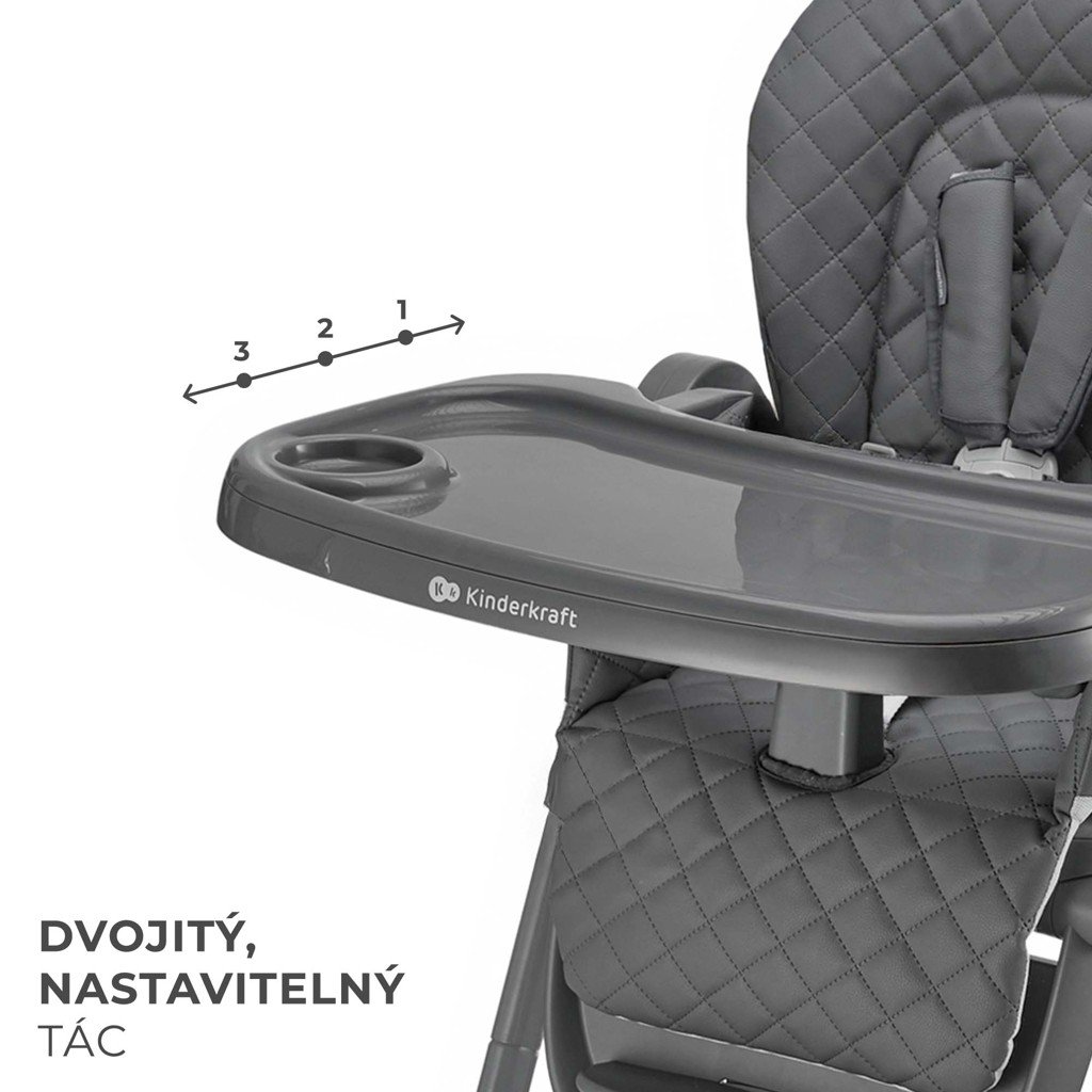 Kinderkraft TULO je funkční jídelní židle 3v1, která roste spolu s vaším dítětem – od prvních jídel až do předškolního věku. Dá se používat od přibližně 6 měsíců do 5 let, přičemž se přizpůsobuje potřebám dítěte v každé fázi. Díky modernímu designu a promyšleným řešením kombinuje pohodlí s úsporou místa, což z ní činí ideální volbu pro moderní rodiny, včetně těch, které bývají v menších prostorách. Tulo slouží jako jídelní židle, podsedák a židle pro starší dítě – do 25 kg. Má 5-stupňové nastavení výšky, 3-stupňové nastavení opěradla a opěrky nohou, jakož i dvojitý podnos s 3-stupňovým nastavením vzdálenosti. Díky paměťovým tlačítkům je změna funkce rychlá a jednoduchá. Integrovaná kolečka s brzdami, 5-bodové bezpečnostní pásy a měkké, snadno čistitelné PU čalounění zvyšují pohodlí a bezpečnost dítěte. Po složení má židle mimořádně kompaktní tvar, což usnadňuje její uskladnění. Zabírá minimum místa, takže se snadno vejde do rohu nebo skříně. Hlavní vlastnosti produktu: - 3-v-1 – jídelní židle, podsedák, židle pro starší dítě – jedno řešení pro roky - 5-stupňové nastavení výšky – přizpůsobí se různým stolům a potřebám - 3-stupňové nastavení opěradla a nožní opěrky – pohodlí v každé poloze - Dvojitý tác s nastavením - Kompaktní složení – zabírá málo místa po složení - Kolečka s brzdami – snadné přemístění a stabilní umístění - Moderní PU čalounění – měkké a snadno čistitelné - 5-bodové bezpečnostní pásy – zajišťují ochranu Technické specifikace: - Hmotnost produktu: 11 kg - Rozměry: - Rozloženo: 82,5 x 52 x 112 cm - Složeno: 34,5 x 52 x 112 cm Upozornění: ŽIDLE NA KRMENÍ Nikdy nenechávejte dítě bez dozoru. Vždy používejte dětskou zábranu. Nebezpečí pádu: Nedovolte dítěti vylézat na výrobek. Výrobek nepoužívejte v případě, pokud nejsou všechny díly správně smontovány a připevněny. Pozor na nebezpečí otevřeného ohně a jiných zdrojů silného tepla v blízkosti výrobku. Pozor na nebezpečí převrhnutí, pokud vaše dítě zapře nohy o stůl nebo jiné předměty. Produkt nepoužívejte, dokud dítě nedokáže samostatně sedět. Produkt nepoužívejte v případě prasknutí, přetržení nebo ztráty kterékoli části. Jídelní židle je určena pro děti ve věku do 36 měsíců, s hmotností do 15 kg, které dokážou samostatně sedět. Před každým použitím je třeba zkontrolovat, zda produkt zajišťuje bezpečnost a zda je stabilní. Ujistěte se, že jsou popruhy správně složeny. Produkt nepřesouvejte ani nezvedejte, když dítě sedí uvnitř. Nepoužívejte náhradní díly ani příslušenství, které výrobce nedoporučuje. Při skládání a rozkládání produktu se ujistěte, že děti nejsou na blízku, abyste předešli zraněním. Umístíte-li židli poblíž okna, dítě ji může použít jako schůdek a vypadnout z okna. Když se židle nepohybuje, vždy používejte blokádu koleček. SEZENÍ PRO DĚTI Tento výrobek je určen pro děti ve věku od 3 do 7 let s hmotností do 25 kg. NEUMÍSŤUJTE ​​tento výrobek blízko okna. Dítě jej může použít jako stupínek, což může vést k vypadnutí z okna. Umístění produktu v blízkosti otevřeného ohně a jiných zdrojů tepla představuje riziko, které byste si měli uvědomit. NEUMÍSŤUJTE ​​tento výrobek blízko okna, protože šňůrky ze žaluzií nebo záclon mohou dítě udusit. Všechny upevňovací prvky by měly být vždy řádně dotaženy. Nepoužívejte židli, pokud je některá její část prasklá, roztržená nebo neúplná. Používejte pouze náhradní díly schválené výrobcem. Přidržovací zařízení je třeba demontovat/zakrýt, pokud se výrobek používá jako židle pro starší děti. SEDADLO NAMONTOVANÉ NA ŽIDLE: Nikdy nenechávejte dítě bez dozoru. Používejte vždy zádržný systém a ujistěte se, že je složen správně. Používejte vždy systém připevnění na židli a před použitím se ujistěte, že je správně připevněn. Před použitím vždy zkontrolujte bezpečnost a stabilitu sedadla namontovaného na židli pro dospělé. Nikdy nepoužívejte sedák na židli na taburetkách nebo lavicích. Výrobek je určen pro děti, které dokáží samostatně sedět (minimálně 6 měsíců), až do 36 měsíců nebo s maximální hmotností 15 kg. Minimální rozměry sedačky a opěradla židle pro dospělou osobu: 43 x 42 x 63 cm (šířka x hloubka x výška) (Z). Ujistěte se, že židle pro dospělé se sedačkou namontovanou na židli je umístěna v poloze, ve které se dítě nemůže opřít nohama o stůl nebo jinou konstrukci, protože to může způsobit převrácení židle pro dospělé, která podepírá sedačku namontovanou na židli. Nepoužívejte sedačku namontovanou na židli, je-li některá část poškozena, roztržena nebo chybí. Nepoužívejte jiné příslušenství nebo náhradní díly než ty, které jsou schváleny výrobcem. Opěradlo se musí nacházet v co nejvzpřímenější poloze. Adresa dodavatele Supl4kraft sp. z o.o. ul. Tatrzanská 1/5, 60-413 Poznan, Poland support@kinderkraft.com www.kinderkraft.com.