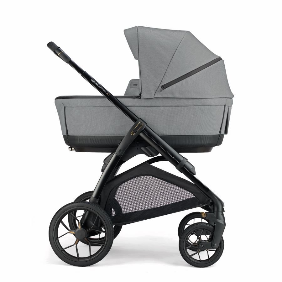 Kombinovaný kočárek Aptica XT 4v1 Recline se skládá z: prostorné hluboké vaničky XXL s 5-ti okénky, matrace, Welcome PadTM, stojanu Stand UpTM, autosedačky Darwin Recline Evo R129, sportovní sedačky All season s boudičkou,  košíku, držáku pohárku a nového odlehčeného adaptivního podvozku Aptica XT.