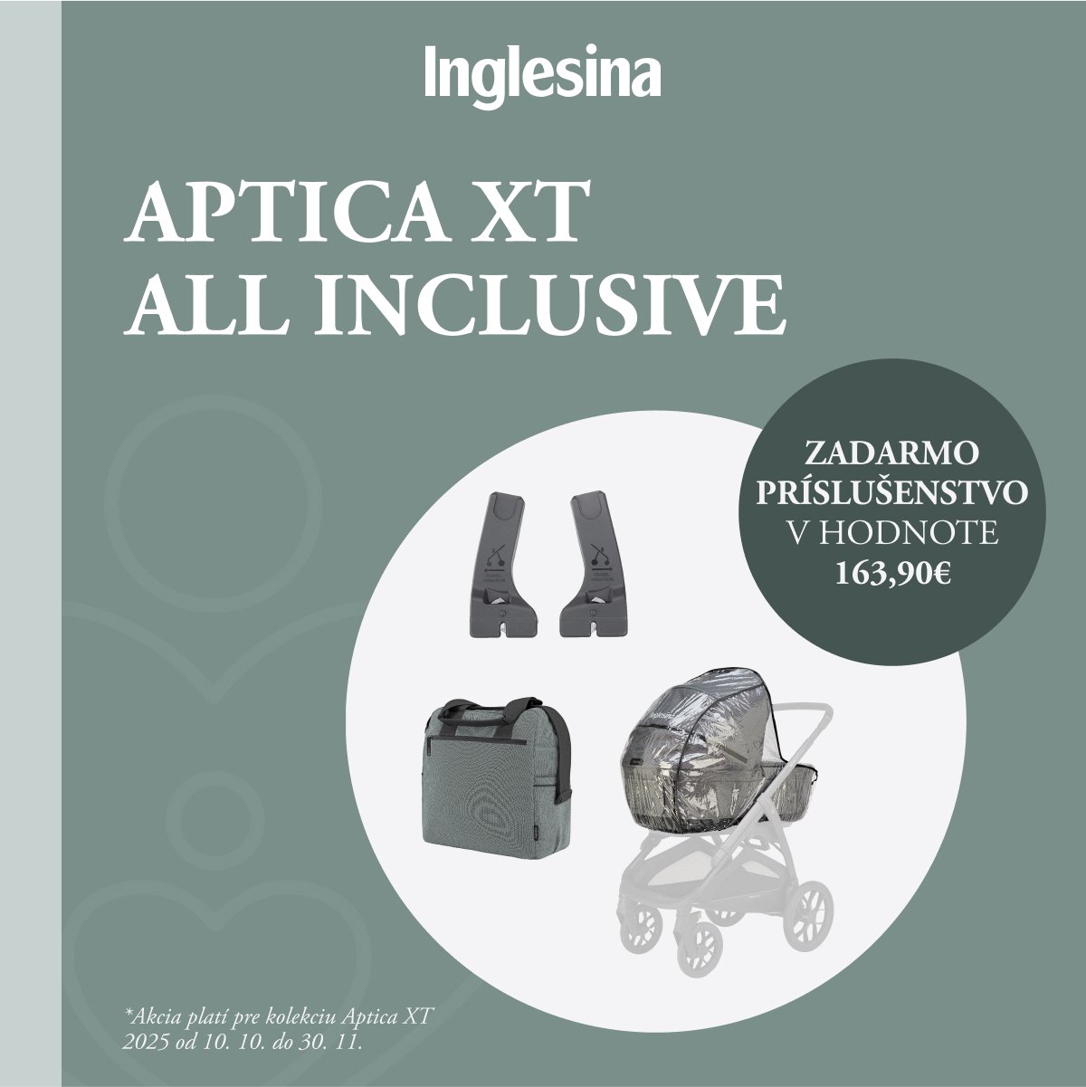 Kombinovaný kočárek Aptica XT 2025 se skládá z: prostorné hluboké vaničky XXL s 5-ti okénky, matrace Welcome PadTM, stojanu Stand UpTM, sportovní sedačky All Season s boudičkou a nánožníkem, košíku, držáku pohárku a nového odlehčeného adaptivního podvozku Aptica XT.