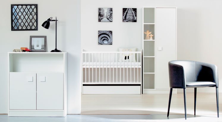 Komoda poskytuje dostatek prostoru na vše potřebné, dvířka chrání před prachem, volně přístupná polička pro frekventované potřeby. Komoda je optimálně vysoká pro pohodlné přebalování.