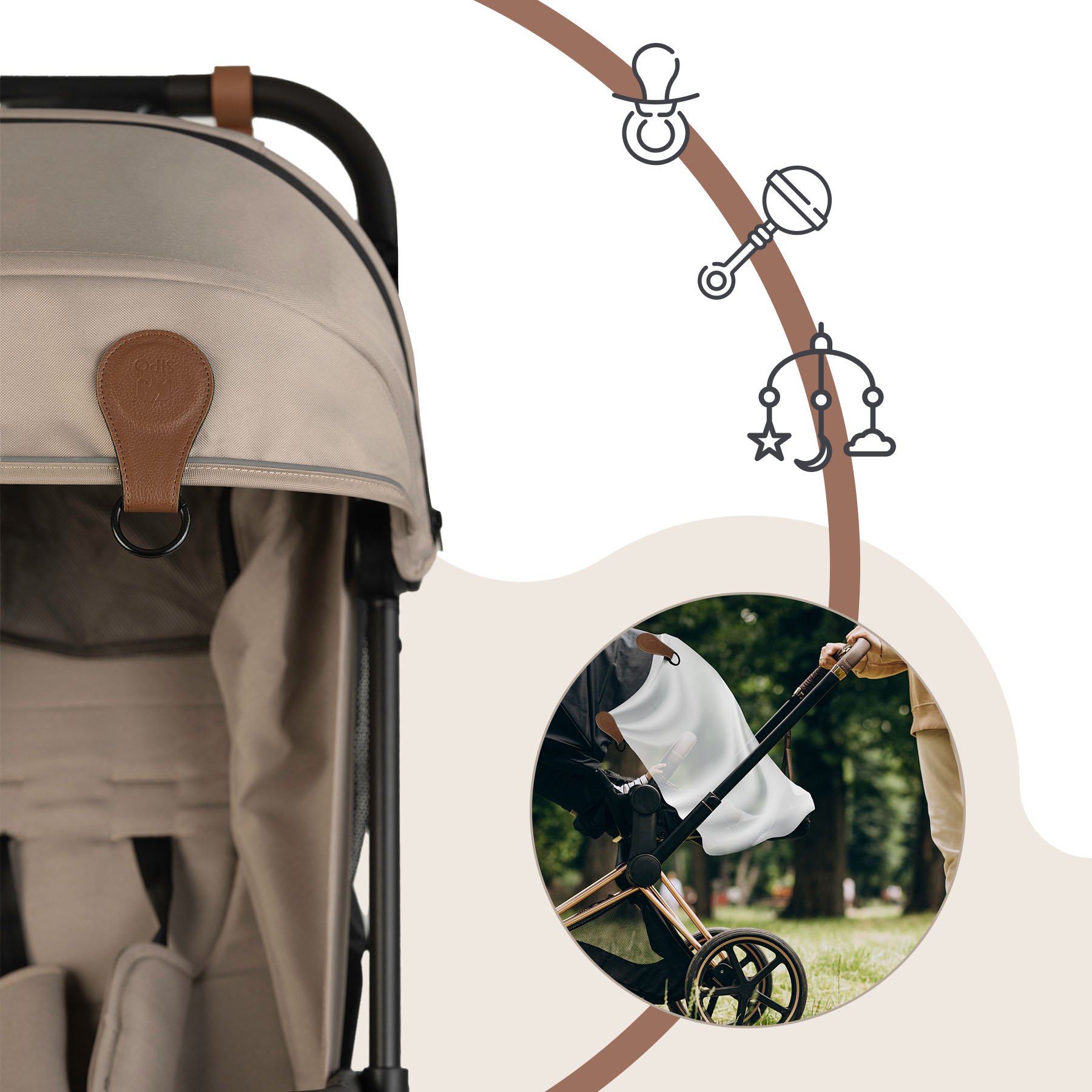 Magnetické klipy na kočárek jsou praktickým a stylovým doplňkem, který vám umožní bezpečně připevnit lehké předměty ke kočárku / nebo autosedačce. Kombinace silných magnetů, elegantního designu a povrchové úpravy z PU kůže zajišťuje jak funkčnost, tak vizuální přitažlivost. Díky přidanému kovovému kroužku lze magnetické klipy zavěsit například na rukojeť tašky, háček v autě nebo na jakékoli jiné vhodné místo. Magnetické klipy jsou ideálním řešením pro všechny, kteří hledají odolný, elegantní a univerzální doplněk pro každodenní použití.