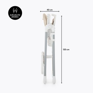 Dětská židlička GUSTOPro společné chvíle za jedním stolem! Dětská židle GUSTO s vyměnitelným potahem je inovativní výrobek na trhu, který nejenže zajišťuje maximální bezpečnost a funkčnost pro děťátko a rodiče, ale myslí také na ochranu naší planety před příliš rychlou likvidací nepoškozených výrobků. Díky možnosti dokoupení náhradního potahu lze židličku jednoduše proměnit z univerzální na holčičí, chlapeckou nebo ji přizpůsobit Vašemu interiéru. Je to také skvělý způsob, jak základní konstrukci používat delší dobu. Dětskou židli může využít další děťátko v rodině nebo může začít svůj nový život v jiné rodině. Stačí jen koupit nový potah, díky kterému bude židle vypadat jako nová. Péče o životní prostředí, kterou jsme při tvorbě této židle zohlednili, nezastínila nejdůležitější aspekty výrobku – byl totiž navržen tak, aby co nejbezpečněji zlepšil každodenní život děťátka i rodičů. Židle má všechny funkce, které usnadňují každodenní krmení: lze ji snadno sundat a vyčistit, má 5-bodové bezpečnostní pásy, nastavitelnou opěrku zad, nastavitelnou opěrku nohou, nastavitelnou výšku, dvě polohy pro podnos s horní částí, kterou lze mýt v myčce nádobí. Stabilní konstrukce židle zajistí bezpečnost vašeho dítěte bez ohledu na to, jak je aktivní nebo pohyblivé. Vysoce kvalitní provedení, promyšlená konstrukce, moderní a originální design a kompaktní skládání jsou nadčasové vlastnosti, které zajistí pohodlí pro vaše dítě od okamžiku, kdy se naučí sedět. Vlastnosti: - stabilní a odolná konstrukce pro bezpečné používání, - 5-bodové nastavitelné bezpečnostní pásy, - odnímatelný potah z eko-kůže, který lze dokoupit a vyměnit; je odolný vůči zašpinění a snadno se udržuje v čistotě, - profilované opěradlo s 3-stupňovým nastavením, - 3-stupňové nastavení opěrky nohou, - 2-stupňové nastavení vzdálenosti mezi podnosem a dítětem, - 6-stupňové nastavení výšky sedáku, které odpovídá výšce různých stolů v obývacím pokoji, kuchyni nebo jídelně (nastavitelné v rozsahu 42-62 cm) - široké a pohodlné sedadlo, - široký odnímatelný podnos sestávající ze spodní a horní části, přičemž horní profilovanou část s místem na sklenici lze mýt v myčce nádobí, - protiskluzová úprava předních nohou pro větší stabilitu, - kolečka zabudovaná v zadních nohách, která usnadňují přemisťování židle, - držák na podnos umístěný na zadních nohách židle, - jednoduchost a rychlost montáže a demontáže, - kompaktní rozměry židle ve složeném stavu pro snadné skladování a přepravu, - stylový design a krásné barvy, které lze snadno přizpůsobit každému interiéru. Podrobnosti: - navrhovaný věk dítěte - od 6 do 36 měsíců - maximální hmotnost dítěte - do 15 kg - hmotnost židle s podložkou a podnosem - 6,25 kg - splňuje normu EN14988:2017 +A1:2020 Rozměry: - šířka sedáku: 32,5 cm - výška sedadla: 43 cm - celkový rozměr židle: 74 x 54 x 100 cm - rozměry podnos: 40 x 23 cm - rozestup předních nohou: 54 cm - rozestup zadních nohou: 53 cm - vzdálenost mezi předními a zadními nohami: 74 cm