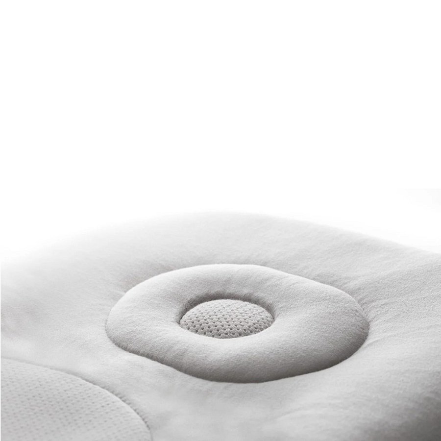 Speciální tvar disku, kde novorozenec spočívá hlavičkou, zmírňuje riziko plagiocefalie, lépe známé jako syndrom ploché hlavičky, a podporuje přirozené uzavírání zadní fontanely.