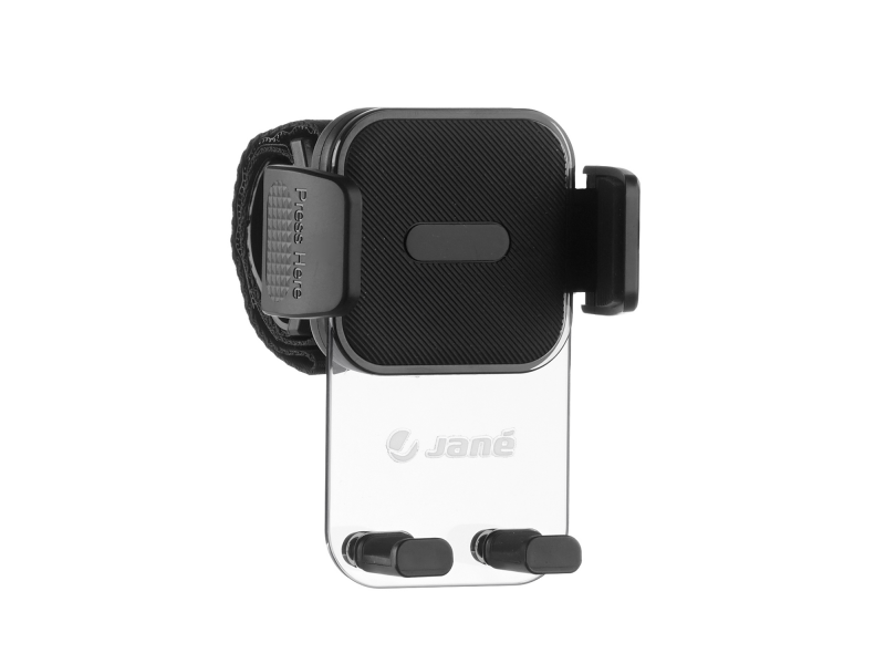 Praktický držák mobilu na kočárek vám uvolní ruce a bezpečně udrží váš mobil na dosah. Na rukojeť kočárku se připevní rychle a snadno, silikon v místě uchycení chrání rukojeť před poškozením. Díky 360° rotaci umožňuje vkládat telefon vodorovně i svisle. Mobil upevníte i uvolníte z držáku velmi snadno jedním prstem. Vhodné pro použití na většině kočárků. Rozměry: 6 x 7,5 x 16 cm
