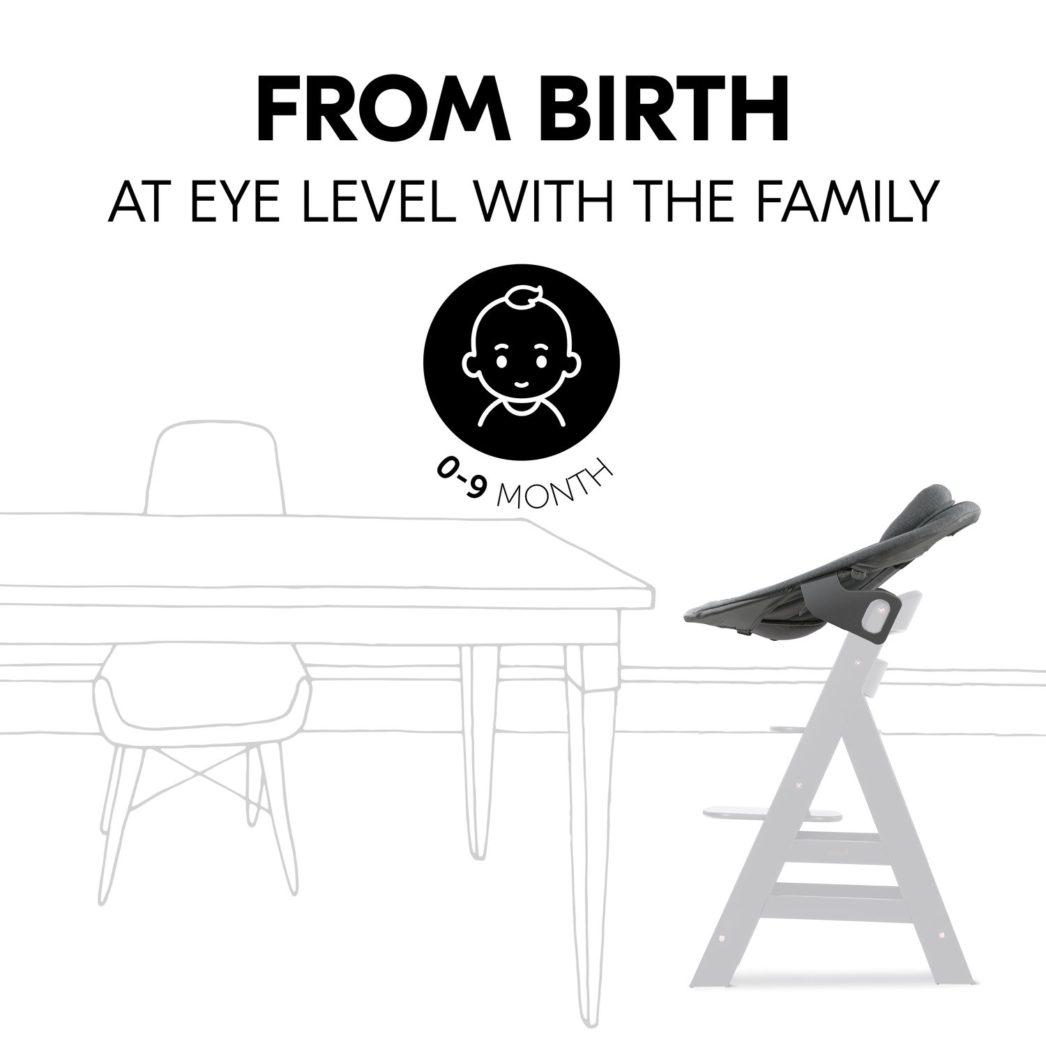 PRO OČNÍ KONTAKT OD PRVNÍHO DNE // Díky nástavci na jídelní židličky ALPHA+ a BETA+ budete mít své maličké stále u sebe a ono bude moci být stále s vámi, ať už si dáváte klidnou večeři nebo popíjíte kávu, budete mít své maličké stále na dohled.