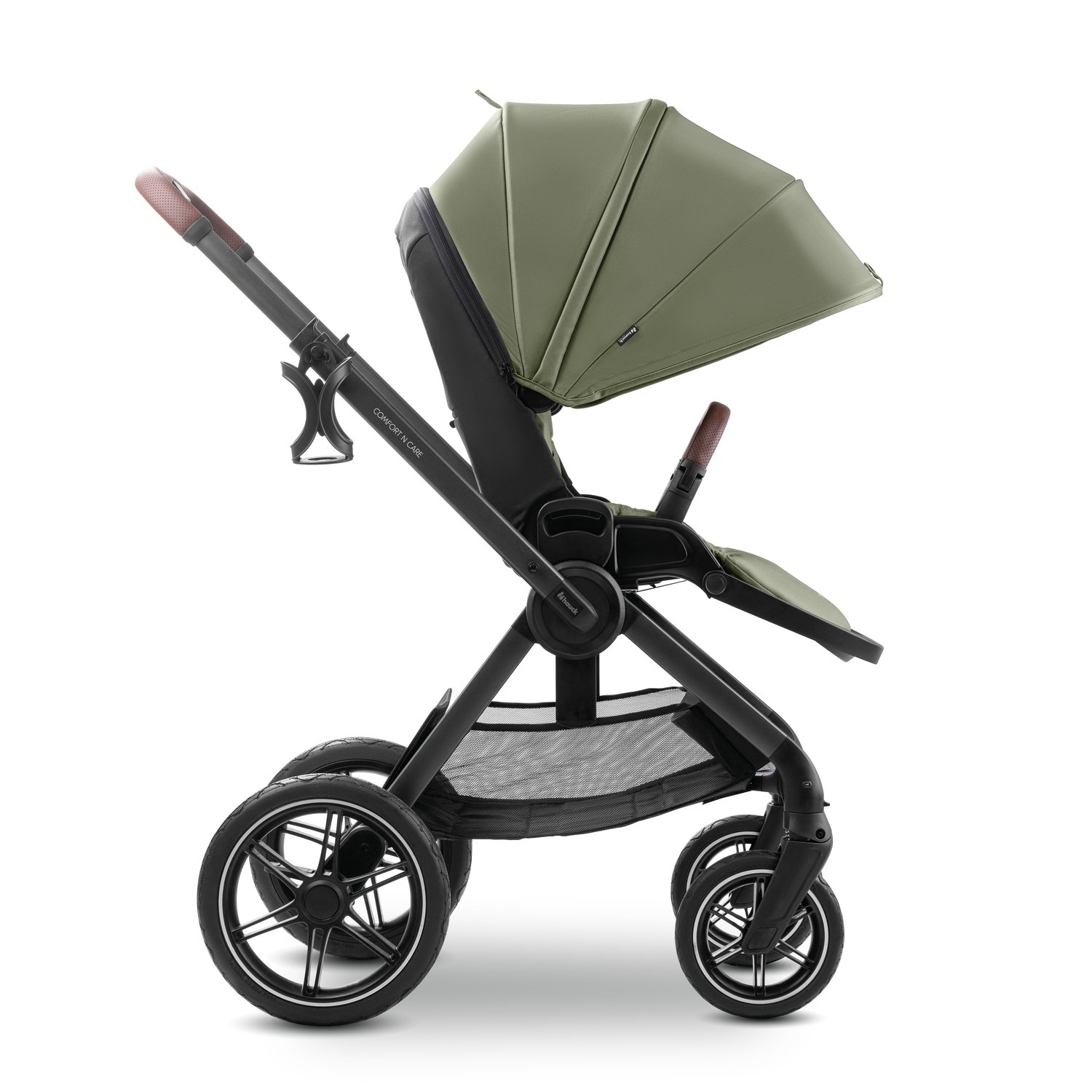 Bezpečné a pohodlné cestování // Gumová kola do každého terénu jsou připravena na každý výlet. Odpružení 4x4 jemně pohupuje vaše děťátko, XL sluneční stříška s prodloužením (s UV 50+) nabízí ochranu před každým počasím a XL panoramatická síťovaná okénka zajišťují čerstvý vzduch. Sedátko kočárku má výškově nastavitelné 5bodové bezpečnostní pásy, dobře polstrovanou, extra vysokou opěrku zad a nánožník.