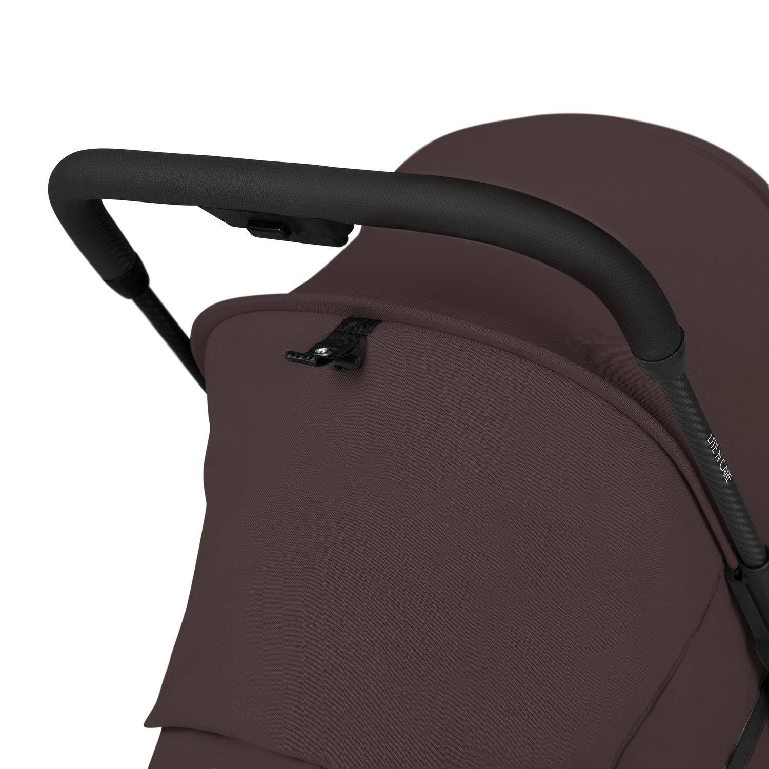 Ať už se pohybujete v úzkých uličkách, šplháte po schodech nebo stíháte letadlo: jedinečný karbonový rám je mimořádně lehký, aniž by to mělo vliv na stabilitu nebo pohodlí. Kožený vzhled madla a ochranného oblouku dodávají kočárku moderní a stylový vzhled.