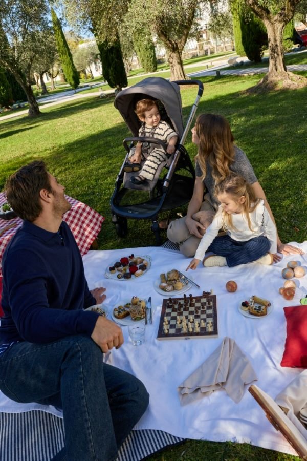 • Dodává se s nánožníkem, celokrytou stříškou s UV úpravou (UPF 50+), madlem a držákem na kojeneckou láhev.
