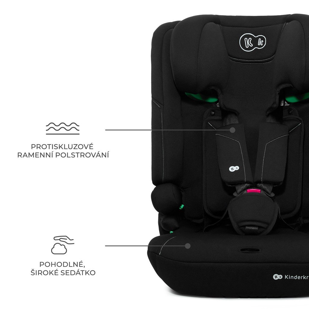 Kinderkraft I-COMFY je autosedačka 3 v 1, která roste spolu s vaším dítětem – určena pro děti od 76 do 150 cm (přibližně od 15 měsíců do 12 let). Splňuje přísnou normu ECE R129 i-Size, která zahrnuje také boční nárazové testy. Díky systému EASY GROW lze současně nastavit opěrku hlavy a pásy, což usnadňuje přizpůsobení sedačky výšce dítěte. Třívrstvá opěrka hlavy H-GUARD s pěnou a systém SPS poskytují dodatečnou ochranu v případě bočního nárazu. Sedačka se vyznačuje jednoduchou a univerzální instalací pomocí automobilového bezpečnostního pásu, takže ji lze snadno namontovat téměř do každého vozidla. Jedinečný vodič bederního pásu drží pás ve správné poloze nízko na pánvi dítěte, čímž zvyšuje bezpečnost cestování. I-COMFY nabízí 10stupňové nastavení opěradla, které umožňuje přizpůsobit sklon opěradla sedačky úhlu sedadla v autě, a široké, pohodlné sedadlo s 5-bodovými bezpečnostními pásy vybavenými měkkými polstry a protiskluzovou vrstvou na ramenních popruzích. Od výšky 140 cm lze autosedačku používat i jako podsedák (booster). Vlastnosti: - Autosedačka 3 v 1 – 76–150 cm, v souladu s normou ECE R129 i-Size - EASY GROW SYSTEM – současné nastavení opěrky hlavy a pásů - H-GUARD SYSTEM – třívrstvá pěnová opěrka hlavy - SPS – zesílená boční ochrana - Jedinečný vodič bederního pásu – stabilní a správné vedení pásu - 10-stupňové nastavení opěradla - Široké sedátko a 5-bodové bezpečnostní pásy s měkkými polstry a protiskluzovou vrstvou - Možnost použití jako podsedák – 140–150 cm Technické parametry: - Vnitřní délka sedáku: 30 cm - Vnější délka sedáku: 39 cm - Šířka sedáku (vnější): 44 cm - Šířka sedáku (vnitřní): 35 cm - Celková vnější šířka: 50 cm - Minimální vnitřní výška: 52 cm - Maximální vnitřní výška: 75 cm - Minimální vnější výška: 55 cm - Maximální vnější výška: 80 cm - Šířka opěradla (vnitřní): 33 cm - Šířka opěradla (vnější): 44 cm - Šířka opěrky hlavy (vnější): 17 cm - Šířka opěrky hlavy (vnitřní): 36 cm Důležité: Autosedačku vždy správně upevněte v souladu s návodem k použití. Nepoužívejte autosedačku v případě vážného poškození. Dítě by mělo být vždy správně připoutáno. Adresa dodavatele: Supl4kraft sp. z o.o. ul. Tatrzanska 1/5, 60-413 Poznan, Poland support@kinderkraft.com www.kinderkraft.com
