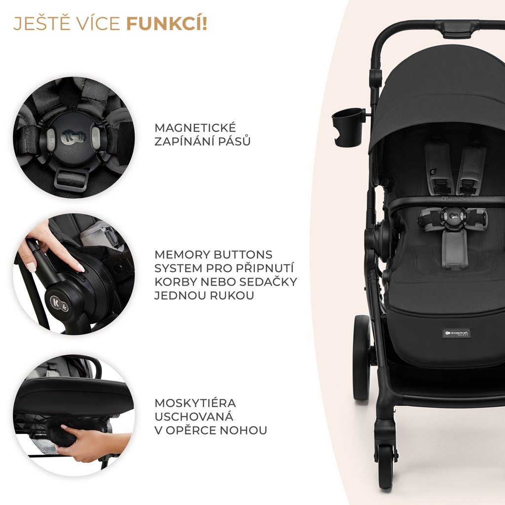 Stačí jediný pohled, abyste si YOXI zamilovali. Jedná se o multifunkční kočárek 2 v 1, který vás bude provázet na procházkách od narození dítěte až do 4 let (22 kg). Je neobyčejně obratný a velmi snadno se s ním manévruje. Na samém začátku budete dítě vozit v pohodlné hluboké korbičce s měkkou matrací a velkou nepromokavou stříškou s filtrem UPF50+, u které lze shrnout látku tak, že dítě má panoramatický výhled, když leží na břiše. Až vaše dítě povyroste, můžete korbičku složit naplocho a uložit ji do skříně – a na jejím místě vás přivítá sportovní sedačka, kterou lze připnout po i proti směru jízdy. Kočárek se snadno a rychle skládá s připnutou sedačkou. Široká škála nastavení vám umožní přizpůsobit YOXI nejen vašemu dítěti, ale i sobě. A díky neprorazitelným kolečkům budete vždy připraveni na procházku. Kola v YOXI se nemusí nafukovat! Ke kočárku patří také řada praktického příslušenství, jako je moskytiéra, chránič na nohy dítěte, pláštěnka, držák na nápoje, taška na rukojeť pro rodiče a adaptéry na autosedačku. Pokud již máte dětskou autosedačku, můžete z ní díky adaptérům vytvořit TRAVEL SYSTEM. A to vše v jednom kočárku! Fusak Jibot 3v1 Horizontal Ink Black je součástí balení. Jeden kočárek – mnoho možností Dětský kočárek YOXI 2 v 1 byl vytvořen pro děti od narození do 22 kg. Zpočátku poslouží vašemu dítěti jako hluboký kočárek s prostornou korbičkou a později jako pohodlný sportovní kočárek, který lze připnout po i proti směru jízdy. Z YOXI lze vytvořit TRAVEL SYSTEM. Lehký a obratný YOXI v sobě snoubí design a funkčnost. Jednoduše se s ním manévruje a díky jeho obratnosti se snadno vyhnete jakékoli překážce. Má odpružený hliníkový rám a neprorazitelná kola, která není třeba nafukovat. Přední kola zablokujete pro jízdu vpřed – ideální pro jízdu v obtížnějším terénu, například při procházkách po parkových stezkách. Ideální pro nemluvňata Dětský kočárek YOXI je určen pro nemluvňata. Na vaše dítě čeká velká, pohodlná korba s měkkou matrací a chráničem pro chladnější dny. Ventilační síťky poskytnou dítěti ležícímu na břiše panoramatický výhled na svět. Až vaše dítě z korby vyroste, můžete ji snadno složit naplocho a uložit do skříně. Ochrana proti nepříznivým atmosférickým podmínkám Stříšky na sportovním kočárku i sportovní verzi jsou velké, s ventilací a filtrem UPF50+. Jsou nepromokavé a mají dodatečný ventilační panel, ideální pro horké dny. Kompletní regulace pro lepší přizpůsobení U kočárku YOXI můžete nastavit opěrku nohou i opěrku zad. Vytvoříte tak pohodlný prostor pro zdřímnutí dítěte během procházek. YOXI se přizpůsobí i vám: nastavitelná rodičovská rukojeť vám umožní přizpůsobit kočárek vaší výšce. Na procházku i odpočinek Sedačka YOXI je ve správné výšce, aby bylo možné kočárek přistavit ke stolu. Kočárek lze složit jedním pohybem – skládá se dovnitř, díky tomu se látka kočárku při přenášení neušpiní. Ještě více funkcí MEMORY BUTTONS SYSTEM umožňuje rychlé odepnutí sportovní sedačky a korby od konstrukce – pouze jednou rukou. Magnetická spona pásů usnadní upevnění dítěte v kočárku. A pokud máte dětskou autosedačku, můžete z ní díky přiloženým adaptérům vytvořit TRAVEL SYSTEM. Vše po ruce Objemný koš s nosností až 5 kg pojme veškeré potřebné příslušenství. Deka a pleny navíc? A co nákupy, které jste udělali po cestě domů? Snadný přístup z obou stran vám umožní rychle vytáhnout jakoukoli věc. Ke kočárku je dodáváno také příslušenství: moskytiéra (v opěrce nohou, kterou budete mít vždy s sebou), chrániče na nohy, pláštěnka, držák na nápoje, taška na rukojeť pro rodiče a adaptéry na autosedačku. Technické parametry: Materiály: - rám: hliník - potah: polyester - adaptéry: plast - kola: gumová s pěnovou výplní - matrace: polyester - taška pro rodiče: polyester - maximální hmotnost dítěte: 22 kg - maximální zatížení koše: 5 kg Rozměry: - rozměry rozloženého kočárku: 97/89 D x 59 Š x 107 V - rozměry složeného kočárku: 31 D x 59 Š x 73 V - hmotnost: 11 kg (CS) Týká se korby: UPOZORNĚNÍ! Tento výrobek je určen pro děti, které nemohou sedět bez pomoci, obracet se anebo chodit po čtyřech. Maximální hmotnost dítěte: 9 kg. UPOZORNĚNÍ! Nikdy nepokládejte toto přenosné lůžko na nosnou konstrukci. Výrobek je určen pro děti o hmotnosti / věku: gondola od narození do 9 kg, kočárek od 0 měsíců do 22 kg nebo do 4 let, podle toho, co nastane dříve. UPOZORNĚNÍ! Tento výrobek není vhodný pro běhání nebo jízdu na bruslích. Adresa dodavatele: Supl4kraft sp. z o.o. ul. Tatrzanska 1/5, 60-413 Poznan, Poland support@kinderkraft.com www.kinderkraft.com