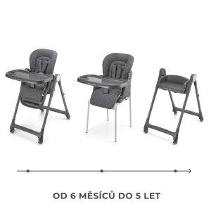 Kinderkraft TULO je funkční jídelní židle 3v1, která roste spolu s vaším dítětem – od prvních jídel až do předškolního věku. Dá se používat od přibližně 6 měsíců do 5 let, přičemž se přizpůsobuje potřebám dítěte v každé fázi. Díky modernímu designu a promyšleným řešením kombinuje pohodlí s úsporou místa, což z ní činí ideální volbu pro moderní rodiny, včetně těch, které bývají v menších prostorách. Tulo slouží jako jídelní židle, podsedák a židle pro starší dítě – do 25 kg. Má 5-stupňové nastavení výšky, 3-stupňové nastavení opěradla a opěrky nohou, jakož i dvojitý podnos s 3-stupňovým nastavením vzdálenosti. Díky paměťovým tlačítkům je změna funkce rychlá a jednoduchá. Integrovaná kolečka s brzdami, 5-bodové bezpečnostní pásy a měkké, snadno čistitelné PU čalounění zvyšují pohodlí a bezpečnost dítěte. Po složení má židle mimořádně kompaktní tvar, což usnadňuje její uskladnění. Zabírá minimum místa, takže se snadno vejde do rohu nebo skříně. Hlavní vlastnosti produktu: - 3-v-1 – jídelní židle, podsedák, židle pro starší dítě – jedno řešení pro roky - 5-stupňové nastavení výšky – přizpůsobí se různým stolům a potřebám - 3-stupňové nastavení opěradla a nožní opěrky – pohodlí v každé poloze - Dvojitý tác s nastavením - Kompaktní složení – zabírá málo místa po složení - Kolečka s brzdami – snadné přemístění a stabilní umístění - Moderní PU čalounění – měkké a snadno čistitelné - 5-bodové bezpečnostní pásy – zajišťují ochranu Technické specifikace: - Hmotnost produktu: 11 kg - Rozměry: - Rozloženo: 82,5 x 52 x 112 cm - Složeno: 34,5 x 52 x 112 cm Upozornění: ŽIDLE NA KRMENÍ Nikdy nenechávejte dítě bez dozoru. Vždy používejte dětskou zábranu. Nebezpečí pádu: Nedovolte dítěti vylézat na výrobek. Výrobek nepoužívejte v případě, pokud nejsou všechny díly správně smontovány a připevněny. Pozor na nebezpečí otevřeného ohně a jiných zdrojů silného tepla v blízkosti výrobku. Pozor na nebezpečí převrhnutí, pokud vaše dítě zapře nohy o stůl nebo jiné předměty. Produkt nepoužívejte, dokud dítě nedokáže samostatně sedět. Produkt nepoužívejte v případě prasknutí, přetržení nebo ztráty kterékoli části. Jídelní židle je určena pro děti ve věku do 36 měsíců, s hmotností do 15 kg, které dokážou samostatně sedět. Před každým použitím je třeba zkontrolovat, zda produkt zajišťuje bezpečnost a zda je stabilní. Ujistěte se, že jsou popruhy správně složeny. Produkt nepřesouvejte ani nezvedejte, když dítě sedí uvnitř. Nepoužívejte náhradní díly ani příslušenství, které výrobce nedoporučuje. Při skládání a rozkládání produktu se ujistěte, že děti nejsou na blízku, abyste předešli zraněním. Umístíte-li židli poblíž okna, dítě ji může použít jako schůdek a vypadnout z okna. Když se židle nepohybuje, vždy používejte blokádu koleček. SEZENÍ PRO DĚTI Tento výrobek je určen pro děti ve věku od 3 do 7 let s hmotností do 25 kg. NEUMÍSŤUJTE ​​tento výrobek blízko okna. Dítě jej může použít jako stupínek, což může vést k vypadnutí z okna. Umístění produktu v blízkosti otevřeného ohně a jiných zdrojů tepla představuje riziko, které byste si měli uvědomit. NEUMÍSŤUJTE ​​tento výrobek blízko okna, protože šňůrky ze žaluzií nebo záclon mohou dítě udusit. Všechny upevňovací prvky by měly být vždy řádně dotaženy. Nepoužívejte židli, pokud je některá její část prasklá, roztržená nebo neúplná. Používejte pouze náhradní díly schválené výrobcem. Přidržovací zařízení je třeba demontovat/zakrýt, pokud se výrobek používá jako židle pro starší děti. SEDADLO NAMONTOVANÉ NA ŽIDLE: Nikdy nenechávejte dítě bez dozoru. Používejte vždy zádržný systém a ujistěte se, že je složen správně. Používejte vždy systém připevnění na židli a před použitím se ujistěte, že je správně připevněn. Před použitím vždy zkontrolujte bezpečnost a stabilitu sedadla namontovaného na židli pro dospělé. Nikdy nepoužívejte sedák na židli na taburetkách nebo lavicích. Výrobek je určen pro děti, které dokáží samostatně sedět (minimálně 6 měsíců), až do 36 měsíců nebo s maximální hmotností 15 kg. Minimální rozměry sedačky a opěradla židle pro dospělou osobu: 43 x 42 x 63 cm (šířka x hloubka x výška) (Z). Ujistěte se, že židle pro dospělé se sedačkou namontovanou na židli je umístěna v poloze, ve které se dítě nemůže opřít nohama o stůl nebo jinou konstrukci, protože to může způsobit převrácení židle pro dospělé, která podepírá sedačku namontovanou na židli. Nepoužívejte sedačku namontovanou na židli, je-li některá část poškozena, roztržena nebo chybí. Nepoužívejte jiné příslušenství nebo náhradní díly než ty, které jsou schváleny výrobcem. Opěradlo se musí nacházet v co nejvzpřímenější poloze. Adresa dodavatele Supl4kraft sp. z o.o. ul. Tatrzanská 1/5, 60-413 Poznan, Poland support@kinderkraft.com www.kinderkraft.com.
