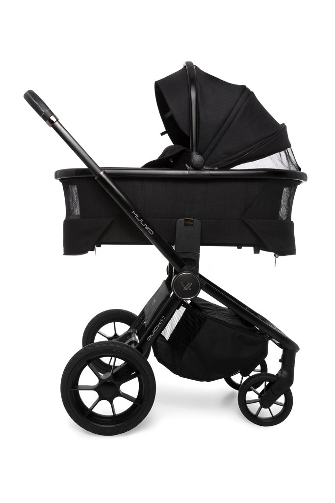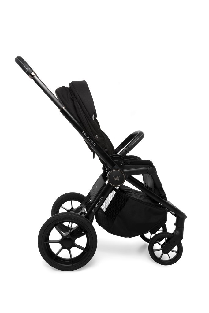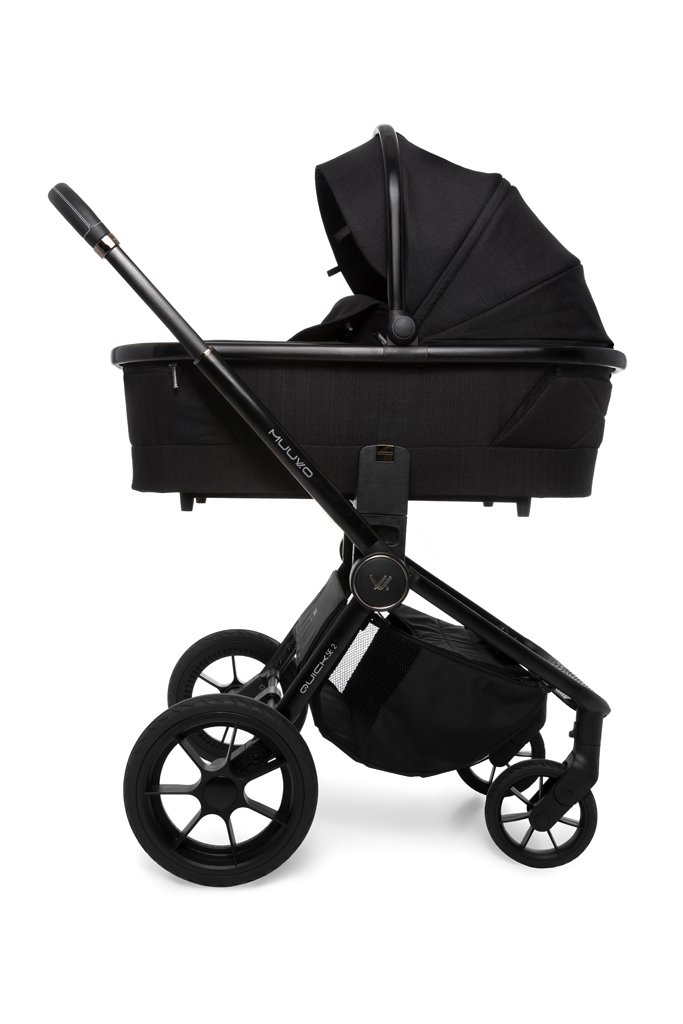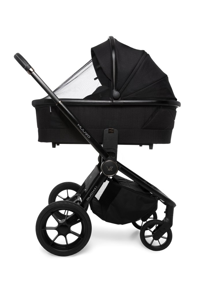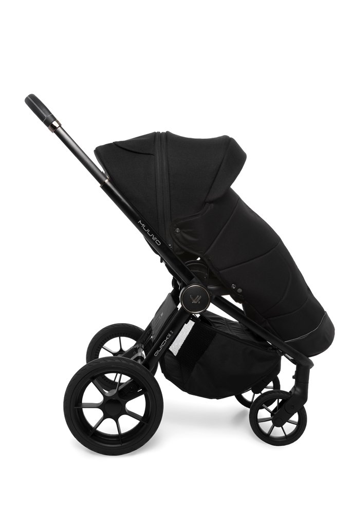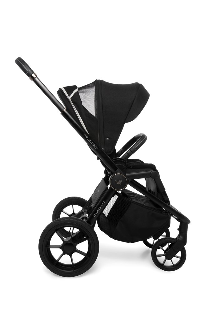 Quick SE 2 je nová edice nejprodávanějšího modelu MUUVO s ještě více vylepšeními a komfortními prvky v kombinaci s krásným designem, který navazuje na moderní trendy. Barevná řada má nový vzhled Chromium Black, kde je černá látka v kombinaci s černým lemováním z ekokůže a tmavými chromovanými dekorativními prvky. Nyní ve výhodném setu s autosedačkou a základnou Cybex. Kočárek Quick SE 2 je vybaven perforovanou opěrkou zad, která poskytuje adekvátní ventilaci, stejně jako systém nastavení výšky stříšky, díky kterému kočárek bude vozit i vyšší děti. 5-ti bodové popruhy jsou obohaceny o magnetickou přezku, která usnadní jejich rychlé upevnění. Prostorná korbička se systémem Memory Buttons, vestavěná moskytiéra a sluneční clona na zip, obojí lze namontovat přímo na rám a na přídavné výškové adaptéry. Při navrhování kočárků Muuvo nikdy nezapomínáme na pohodlí rodičů - kromě pohodlného skládacího systému, nastavitelné rukojeti a velkého, uzavřeného nákupního košíku, je Quick SE2 vybaven zbrusu novou prostornou taškou, kterou lze zavěsit na teleskopickou rukojeť pomocí přídavných nastavitelných popruhů. Součástí kočárků Muuvo jsou velká, gelová, bezúdržbová kola s odpružením, které zajišťují skvělé podmínky pro chůzi s kočárkem. Součástí kočárku je také autosedačka CYBEX Aton B2 i-Size spolu s isofix základnou Vlastnosti: - hlubokou korbu lze nasadit přímo na podvozek, vyšší rodiče ocení možnost nasazení korby na adaptéry zvyšující posazení korby na podvozku pro lepší manipulaci s miminkem - hlukobá korba je vybavena dvěma okénky pro lepší cirkulaci vzduchu v horkém počasí - prodloužitelná stříška s kšiltem pro ochranu dítěte v horkém i chladném počasí u hluboké i sportovní verze - stříška s filtrem UPF50+ je navíc voděodolná - propracovaný design - geometrická ražba na polstrování - děrovaná zádová opěrka kočárku v kombinaci s ventilačními prvky ve sportovné sedačce se bude skvěle hodit na letní procházky - polohování opěrky nohou i opěrky zad do několika poloh u sportovní sedačky - prodloužitelná opěrka nohou, která se snadlo čistí - stříška sportovní sedačky je vybavena síťkou pro lepší klima v horkých dnech - nastavitelná výška stříšky u sportovní sedačky, díky které kočárek roste spolu s dítětem - bezpečnostní pásy pro bezpečnou jízdu s dítětem navíc doplněné o magnetickou přezku - bezpečnostní madlo součástí - teleskopická rukojeť pro různou výšku obou rodičů - možnost nasazení sportovní sedačky v obou směrech jízdy - nepropíchnutelná gelová kola pro jízdy v rozmanitém terénu - přední kola s aretací - prostorný nákupní košík přístupný ze dvou stran - možnost snadného složení včetně sportovní sedačky - včetně popruhu pro nošení na rameni Součást balení: - podvozek - sportovní sedačka - hluboká korba - nánožník - moskytiéra - sportovní i hluboká verze - pláštěnka - sportovní i hluboká verze - oboustranná vložka do sportovní sedačky - uchycení na tašku - přebalovací taška - sluneční clona - součástí kočárku je autosedačka CYBEX Aton B2 i-Size spolu s isofix základnou Technické parametry: - rozměry rozloženého kočárku: 89-98 D x 58 Š x 96-105 V - rozměry složeného podvozku bez sedačky: 59 D x 58 Š x 33 V - hmotnost podvozku se sportovní verzí: 10,85 kg - vnitřní rozměry hluboké korby: 79,5 D X 35 Š - nosnost: 22 kg Na podvozek kočárku se vztahuje 5 let záruka Varování: Postupujte podle pokynů výrobce. Sestava 2v1 je určena pro jedno dítě od 0 měsíců do 22 kg nebo 4 let, podle toho, co nastane dříve. Maximální zatížení košíku je 3 kg. Sportovní část Nikdy nenechávejte dítě bez dozoru. Vždy používejte bezpečnostní pásy a správně je upevněte. Před použitím se ujistěte, že všechny části jsou správně zapnuty. Kočárek není určen k běhání ani jízdě na kolečkových bruslích. Ujistěte se, že vaše dítě je v bezpečné vzdálenosti při skládání a rozkládání kočárku, abyste předešli zraněním. Bezpečnostní brzda by měla být zapnuta při vkládání a vyjímání dítěte z kočárku. Nenechávejte dítě hrát si s tímto produktem. Před použitím zkontrolujte, zda je sedadlo správně nastaveno a zajištěno. Tento produkt je určen k používání od narození, s doporučenou polohou pololežící pro novorozence. Nepoužívejte žádná zatížení na rukojeť nebo zadní část sedadla, která nejsou doporučena výrobcem. Používejte pouze náhradní díly dodané nebo doporučené výrobcem/distributorem. Vždy, když parkujete kočárek, používejte bezpečnostní brzdu. Nepoužívejte tento produkt, pokud některá část chybí nebo je-li některá část poškozena. Před použitím se ujistěte, že všechny pohyblivé části jsou zajištěny. Sedadlo lze namontovat pouze přímo na rám. Montáž na zvýšené adaptéry může způsobit nestabilitu nebo uvolnění sedadla z rámu. Sedadlo není vhodné pro děti mladší 6 měsíců. Korba Tento produkt je určen pro jedno dítě. Nepoužívejte korbu, když dítě začne samostatně stát, sedět nebo se zvedat na rukou a kolenou. Maximální hmotnost dítěte: 9 kg. Nikdy nedávejte do korby dodatečnou matraci. Korba je určena na rám kočárku, který je součástí setu. Používejte pouze na tvrdé, rovné a suché ploše. Nepovolte dětem hrát si v blízkosti korbičky. Nepoužívejte tento produkt, pokud některá část chybí nebo je-li některá část poškozena. Nikdy nenechávejte dítě bez dozoru. Používejte pouze náhradní díly, které jsou doporučeny nebo dodány výrobcem. Používání náhrad může být nebezpečné. Buďte si vědomi nebezpečí spojených s otevřeným ohněm 