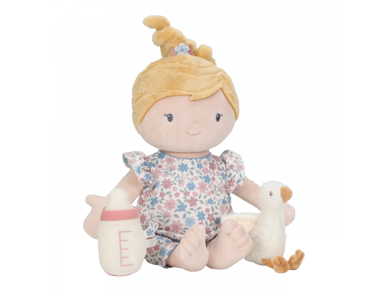 Něžná plyšová panenka Julia z měkkého jemného materiálu je připravena na spaní, oblečena do pyžámka, vybavená lahvičkou a plyšovou hračkou. Je vhodná na hraní i mazlení a bude se s ní i krásně usínat! Výplň je vyrobena ze 100% recyklovaného polyesteru s certifikací GRS (Global Recycled Standard). Rozměry: 40 x 14 x 9 cm Složení: 100% polyester Možno prát v ruce. Vhodné pro děti od 12 měsíců.